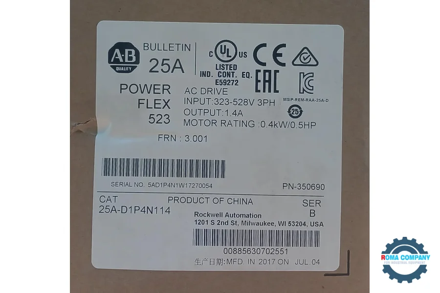 Tags: Automation Parts, eBayAllen-Bradley 25A-D1P4N114 0.4KW/0.5HP, Factory Spares, Industrial Components, Industrial Supplies, ROMA Industrial