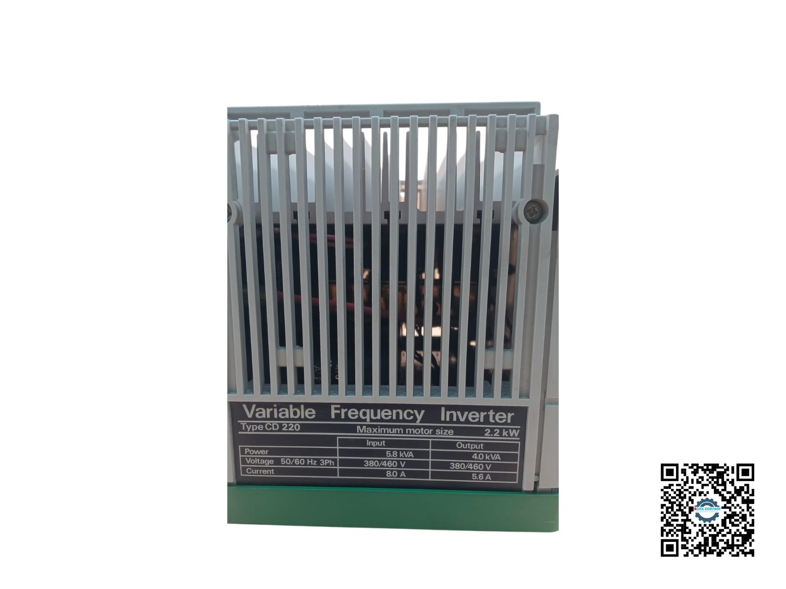 A Control Techniques Commander CD 220 is a variable frequency drive with a 2.2 kW motor rating, operating on a 3-phase 380/460V supply.