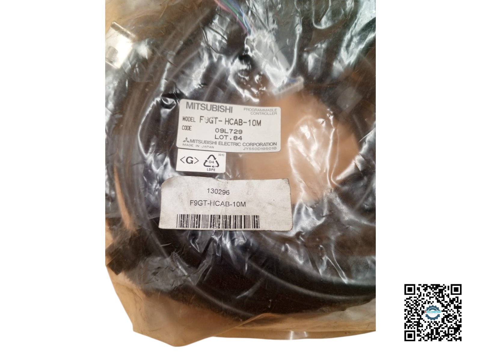 The MITSUBISHI F9GT-HCAB-10M is a dedicated **10-meter PLC programming cable**, designed to connect a Mitsubishi F9GT series Human Machine Interface (HMI) to a Mitsubishi PLC. This `Handy Cable` provides a reliable communication link for programming, monitoring, and debugging the PLC from the HMI. Its substantial length allows for flexibility in system layout and maintenance.