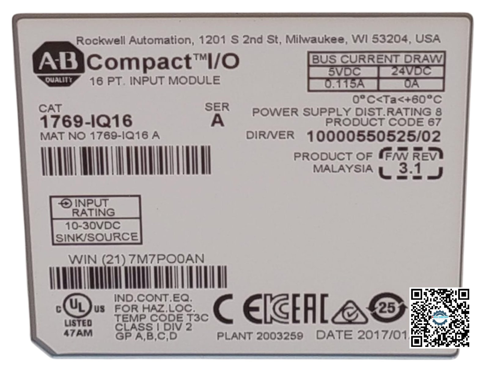 - Part Number: 1769-IQ16
