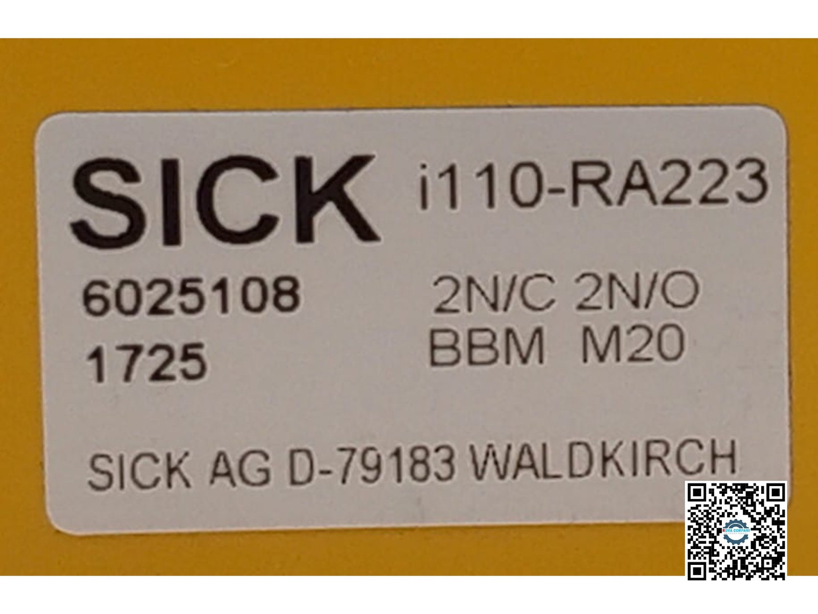 A SICK i110-RA223 is a rotary safety switch with a 2NC / 2NO contact configuration and an M20 cable entry.